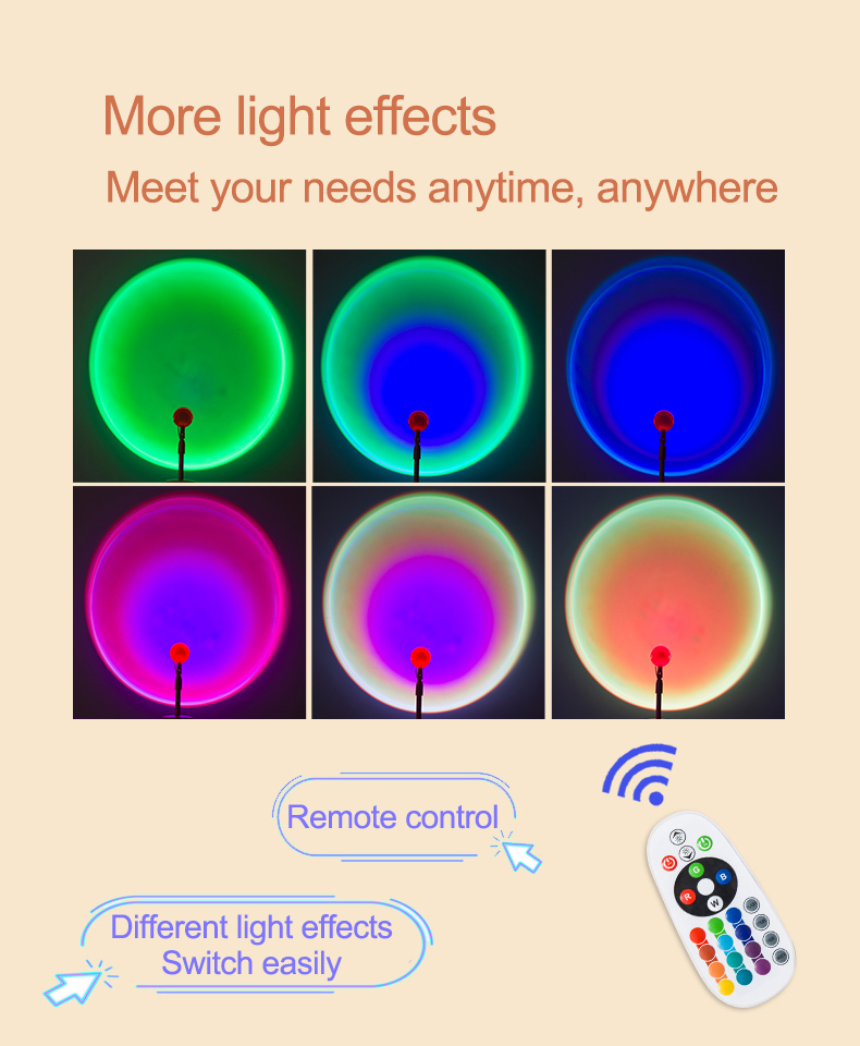 Product Name | Sunset Projection Lamp, 180 Degree Rotation Romantic Visual Rainbow Lamp Night Light+USB Modern Floor Stand Sun | |